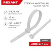 Хомут кабельный 4.8х350 нейл. бел. (уп.100шт) Rexant 07-0350